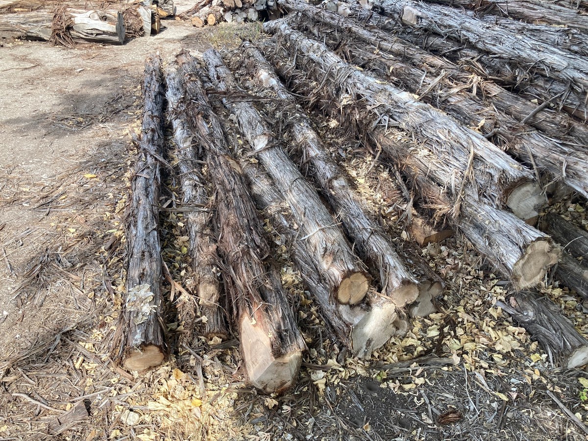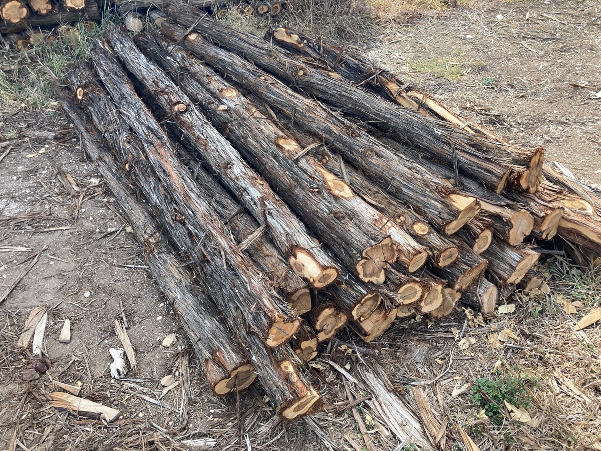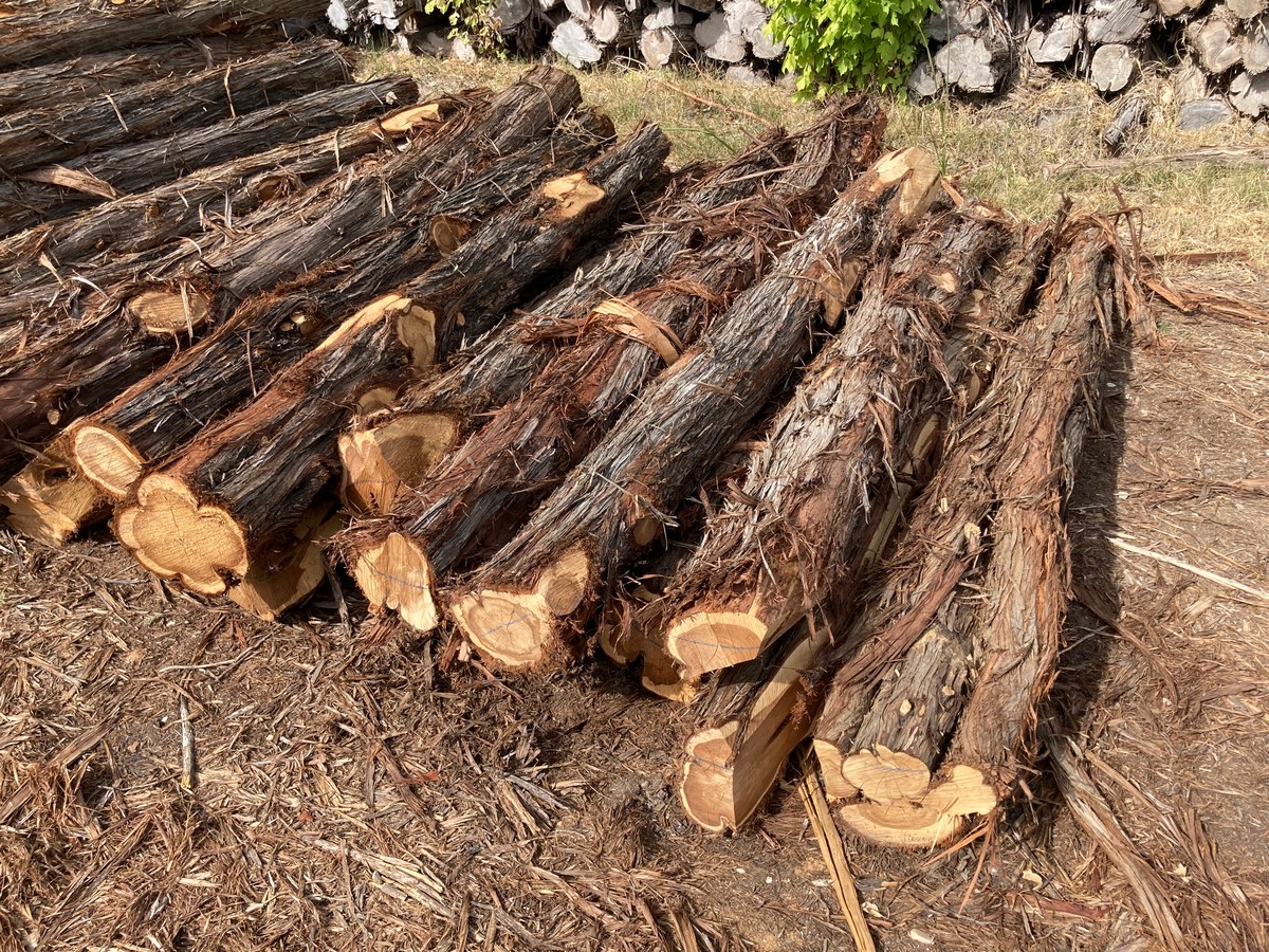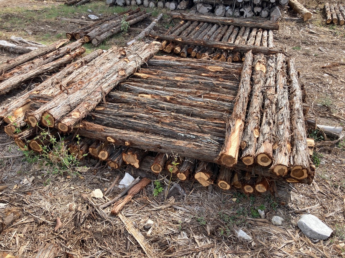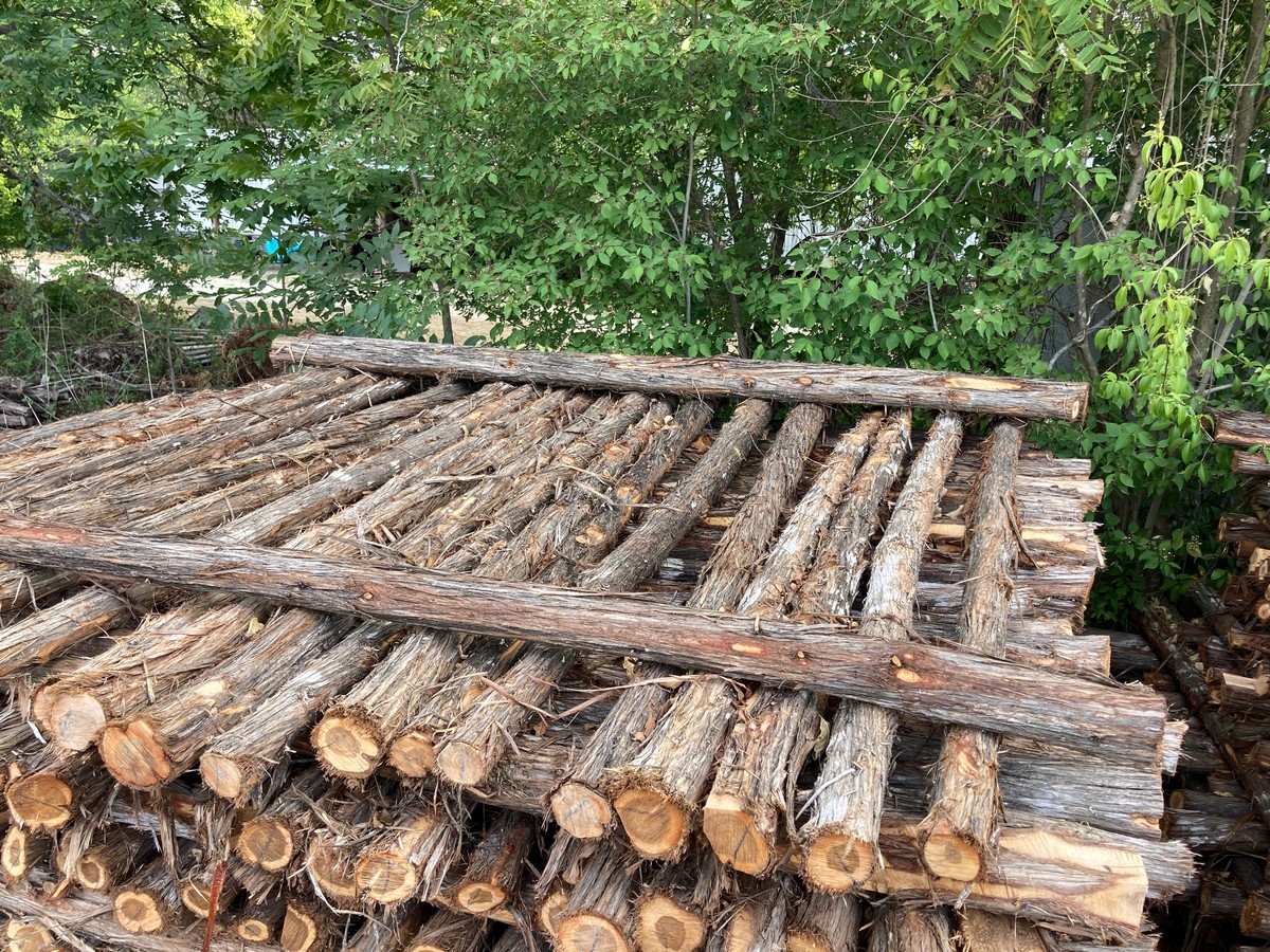 As opposed to lumber, the first number in the dimensions is the minimum length of the post, but is not an exact measurement and will vary by several inches. The second number is the minimum diameter of the post, determined by measuring the circumference of the small end (top) and dividing by 3 (basically, d=c/π). So, for example, a post measuring 87” in length with a circumference of 12” on the small end, would be a 7’x4”. Posts are then graded by straightness into two categories: #1, traditionally called “yard” posts, as you ranchers would use them around their house; or #2, called “wire posts”, used for stretching miles of wire in the pasture as they are more economical and typically contain more heart.