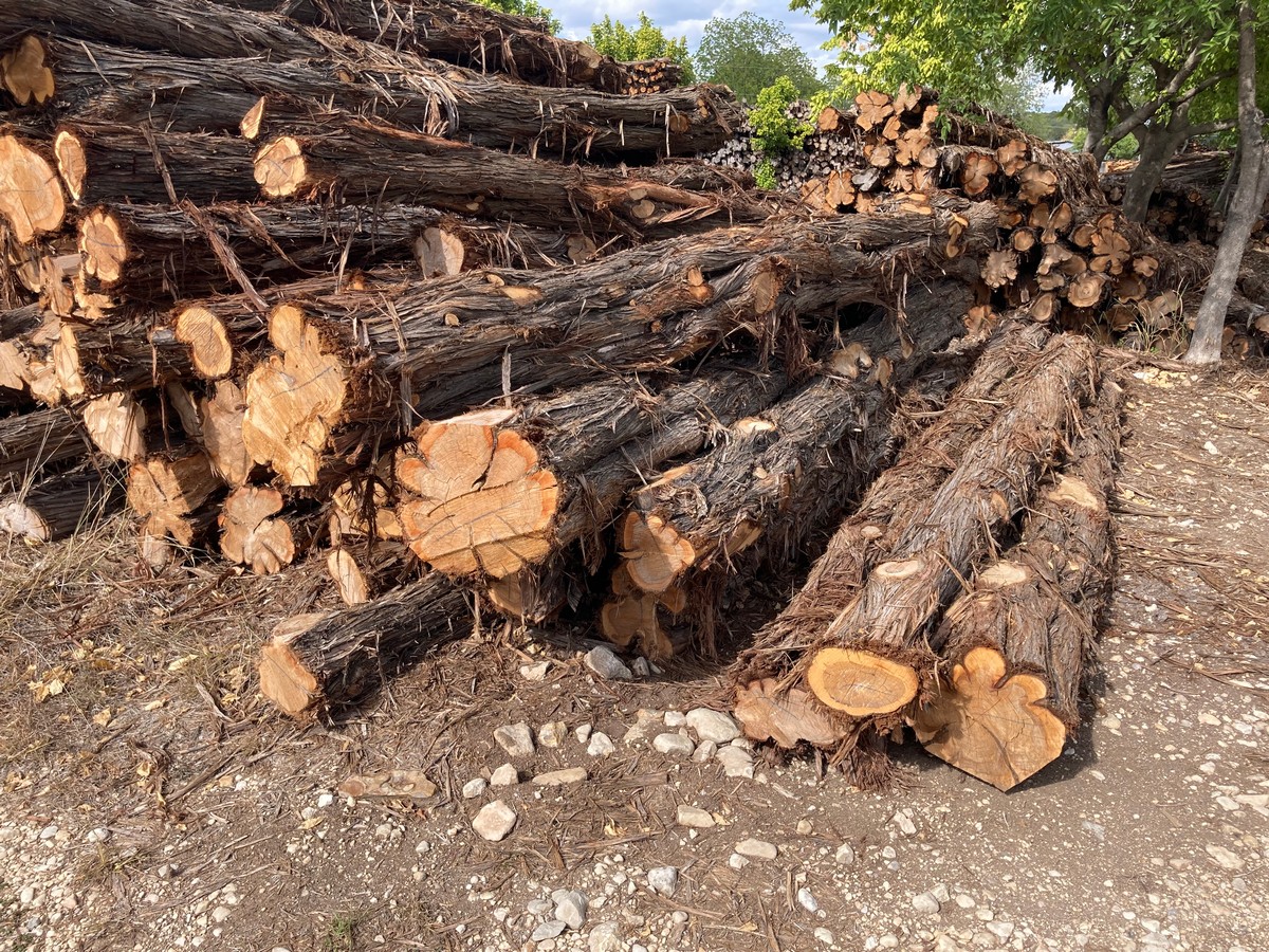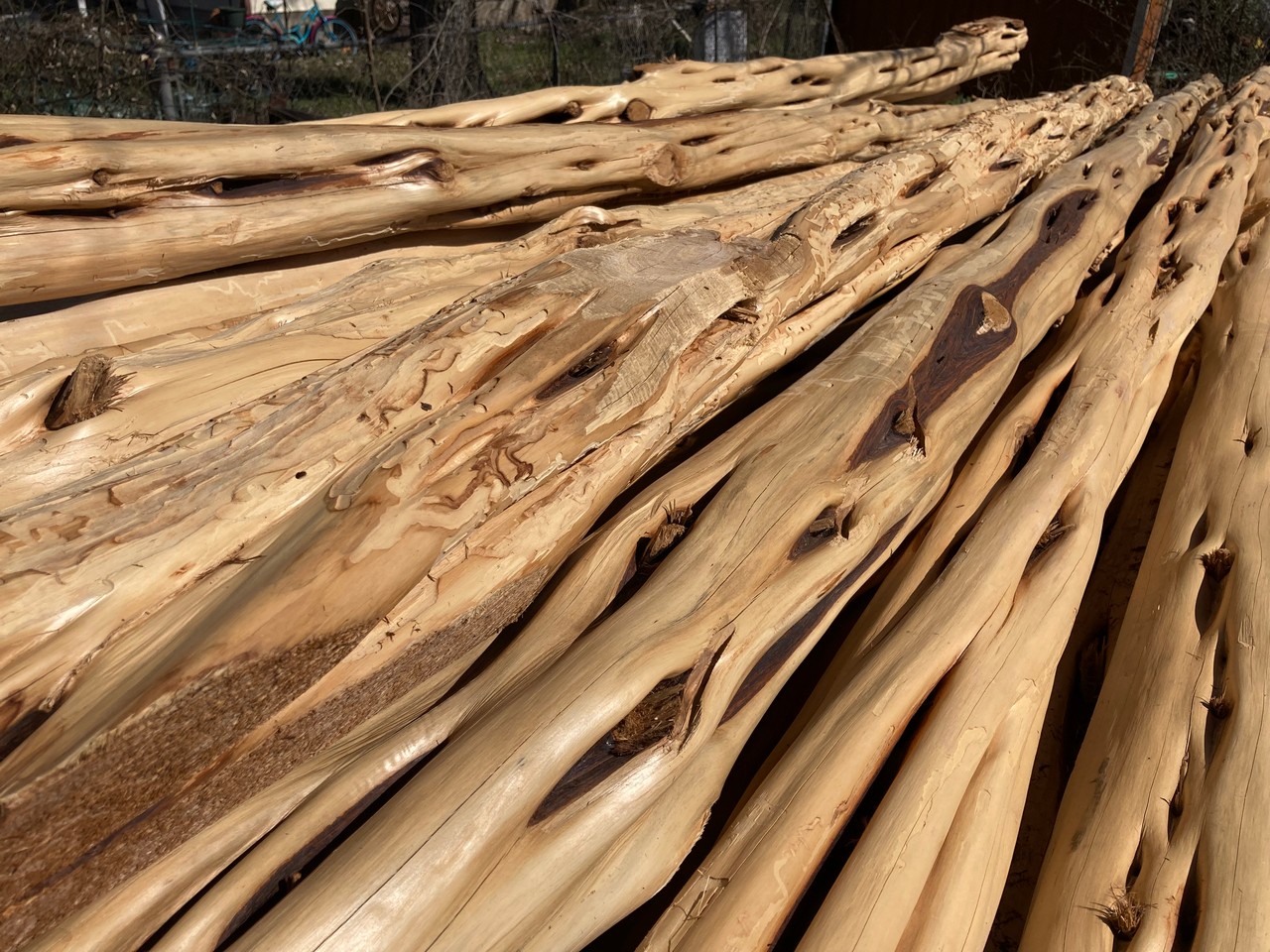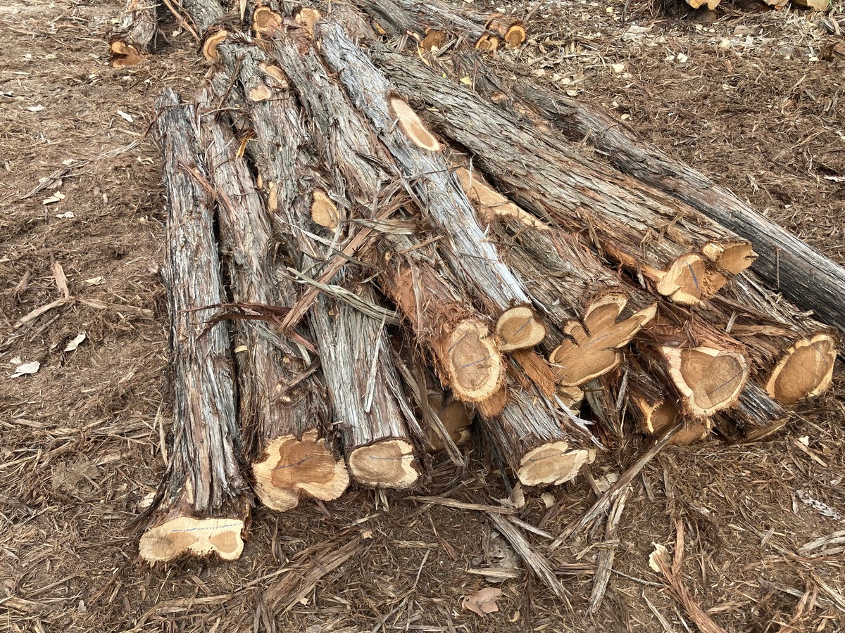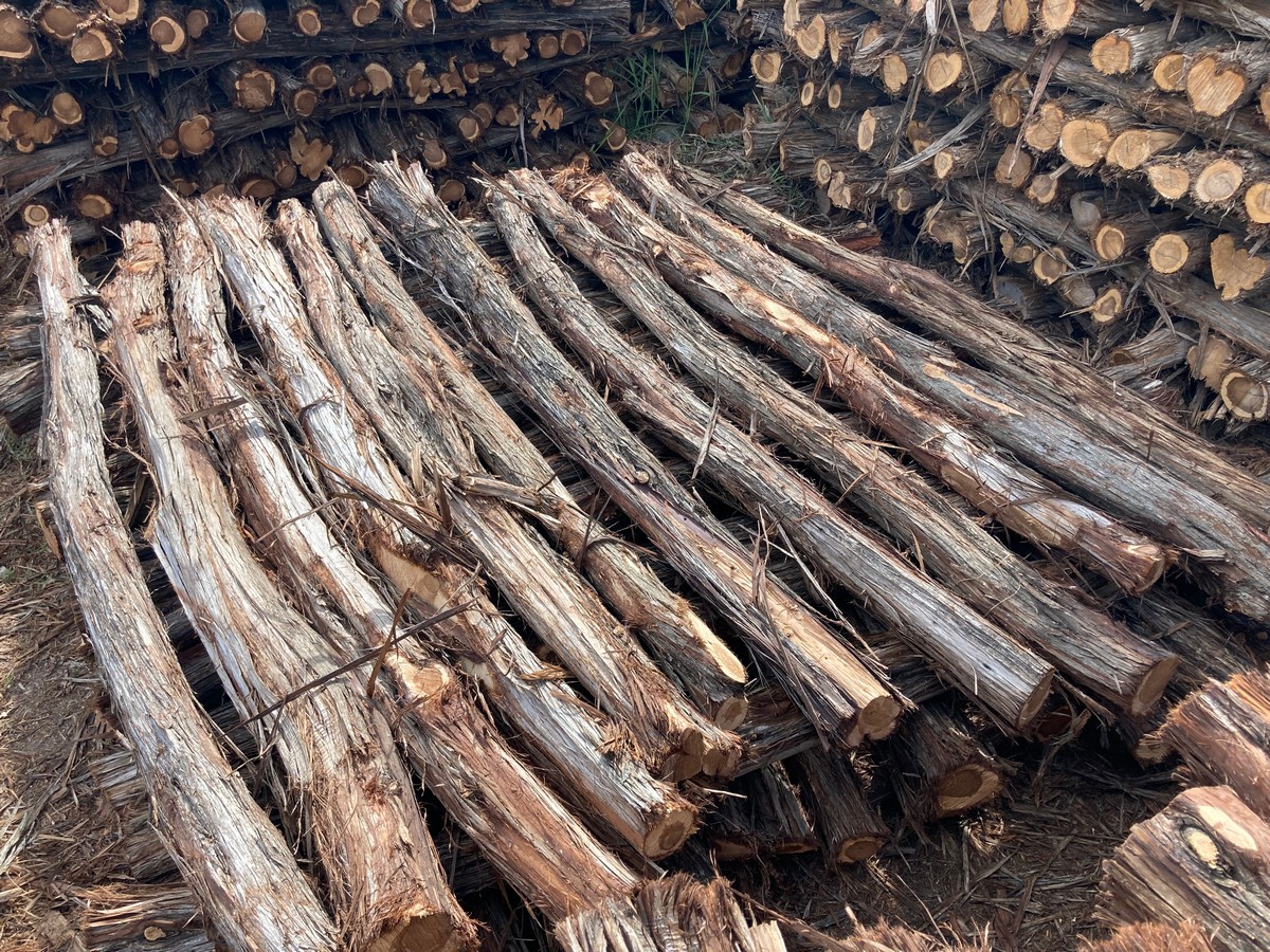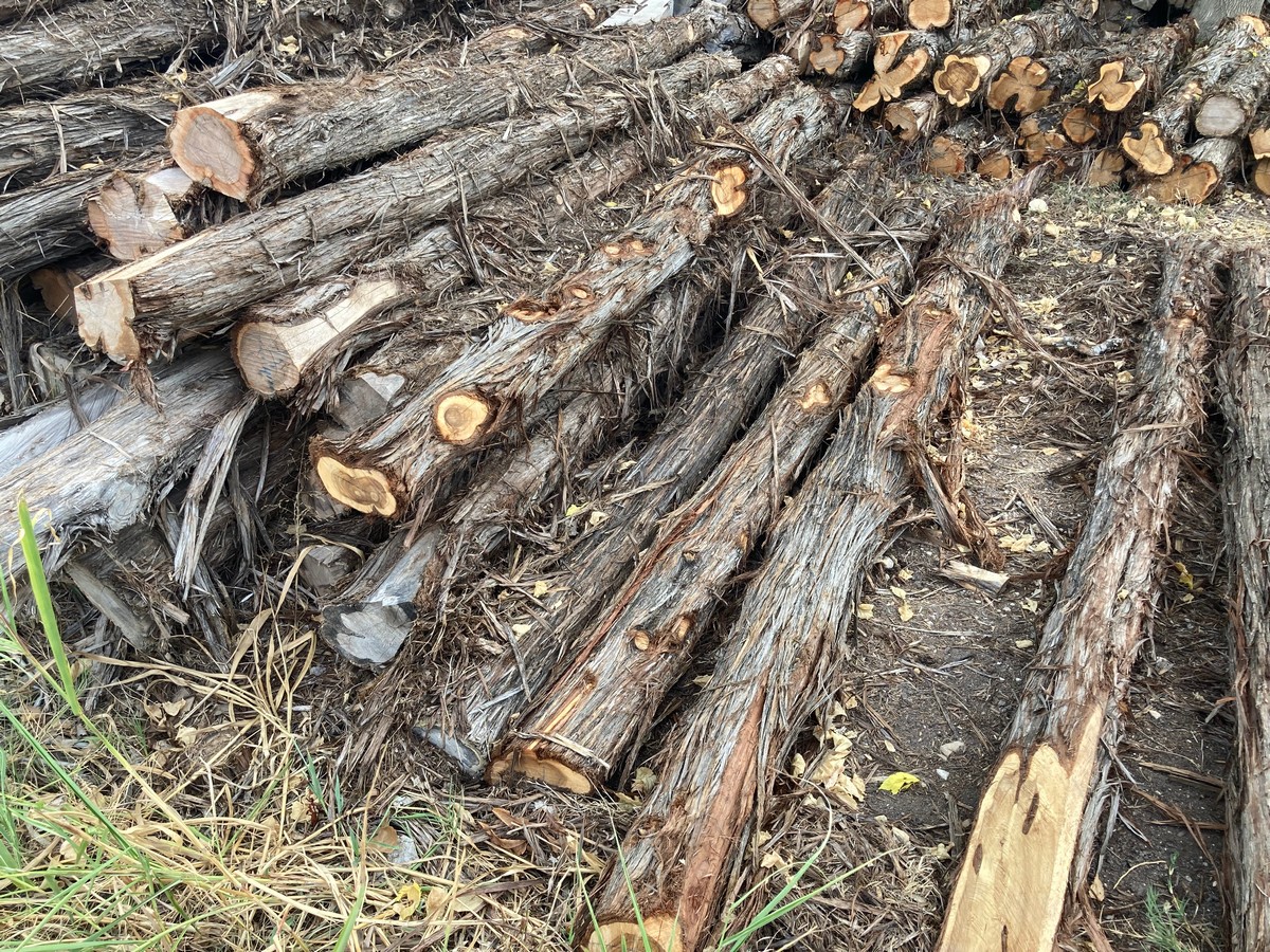 As opposed to lumber, the first number in the dimensions is the minimum length of the post, but is not an exact measurement and will vary by several inches. The second number is the minimum diameter of the post, determined by measuring the circumference of the small end (top) and dividing by 3 (basically, d=c/π). So, for example, a post measuring 87” in length with a circumference of 12” on the small end, would be a 7’x4”. Posts are then graded by straightness into two categories: #1, traditionally called “yard” posts, as you ranchers would use them around their house; or #2, called “wire posts”, used for stretching miles of wire in the pasture as they are more economical and typically contain more heart.